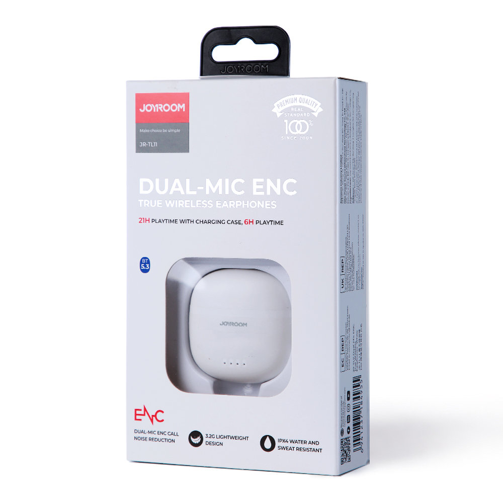 Joyroom słuchawki TWS bezprzewodowe ENC wodoodporne IPX4 Bluetooth 5.3 białe (JR-TL11)