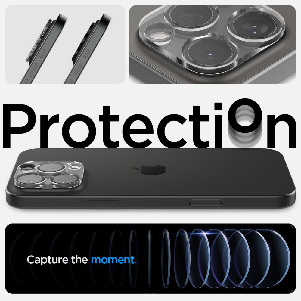 Wykonana ze szkła hartowanego nakładka na obiektyw aparatu od firmy Spigen, to idealne zabezpieczenie tej części urządzenia.