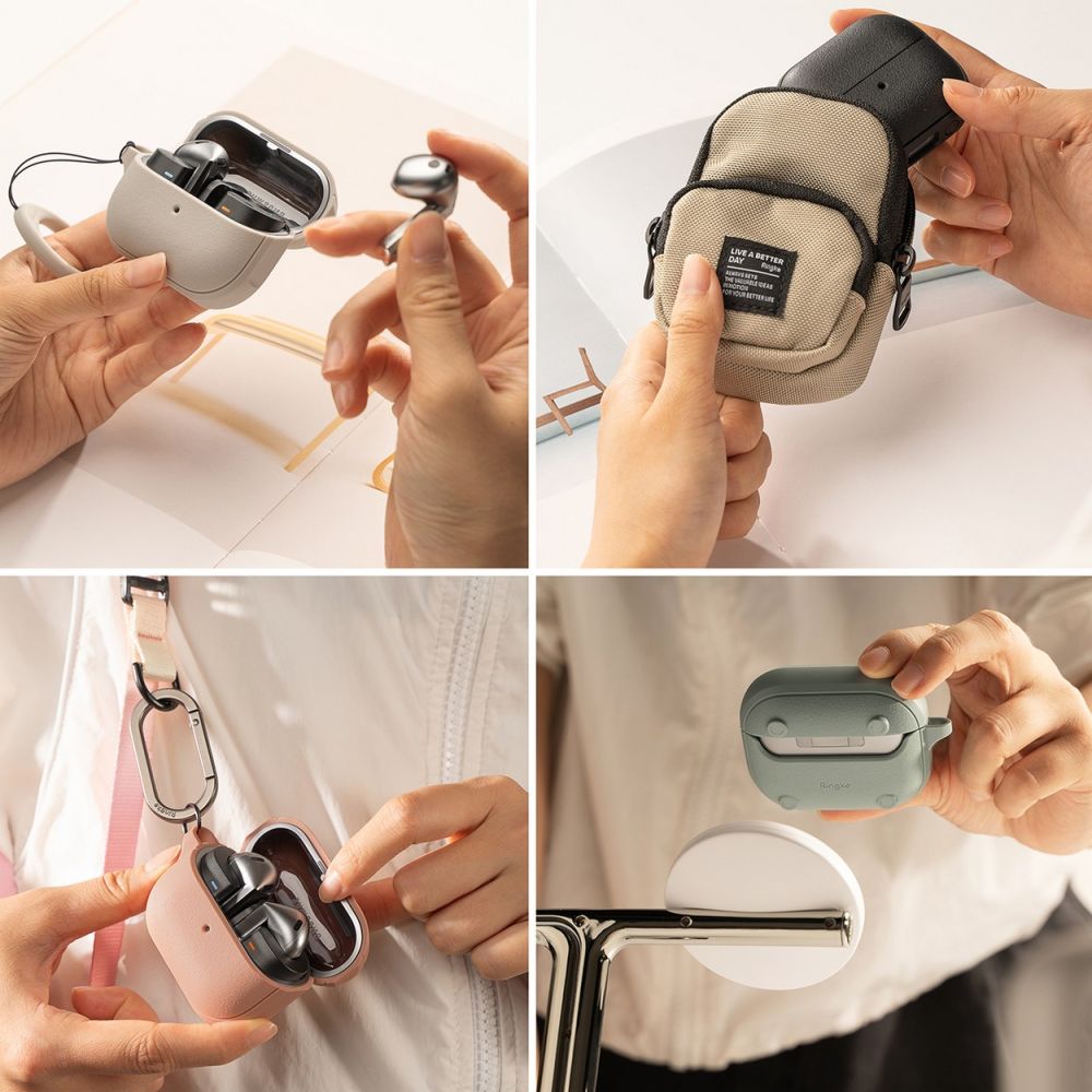 Dodatkowo etui wyposażano w praktyczny karabińczyk zwiększający zakres możliwości - słuchawki można podpiąć do smyczy z kluczami lub szlufki w spodniach dzięki czemu upadek czy zgubienie zestawu staje się wręcz niemożliwe.