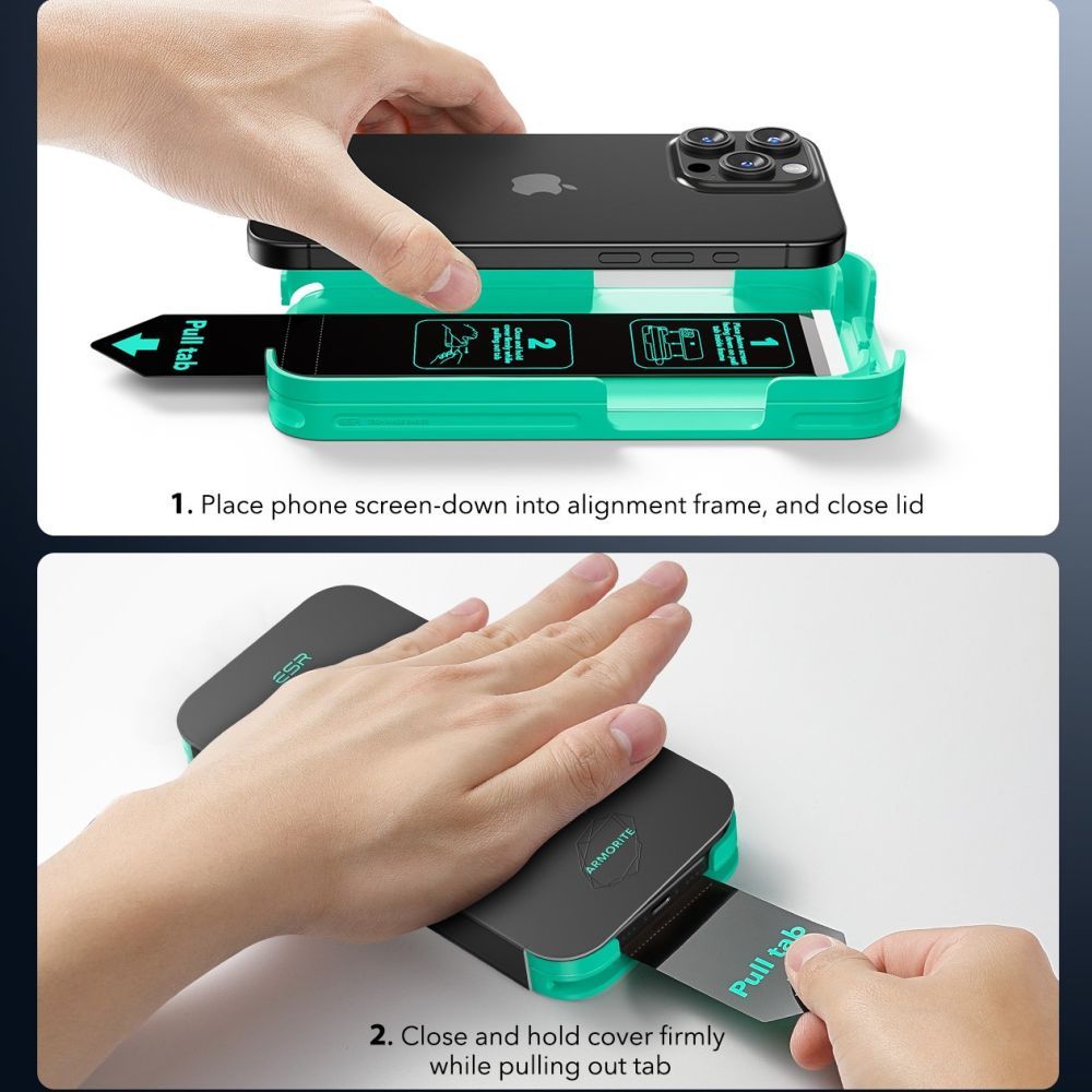 ESR Armorite został wyposażony w specjalną ramkę montażową oraz zestaw czyszczący aby jeszcze bardziej uprościć aplikację i wyeliminować niechciane pęcherzyki powietrza.
