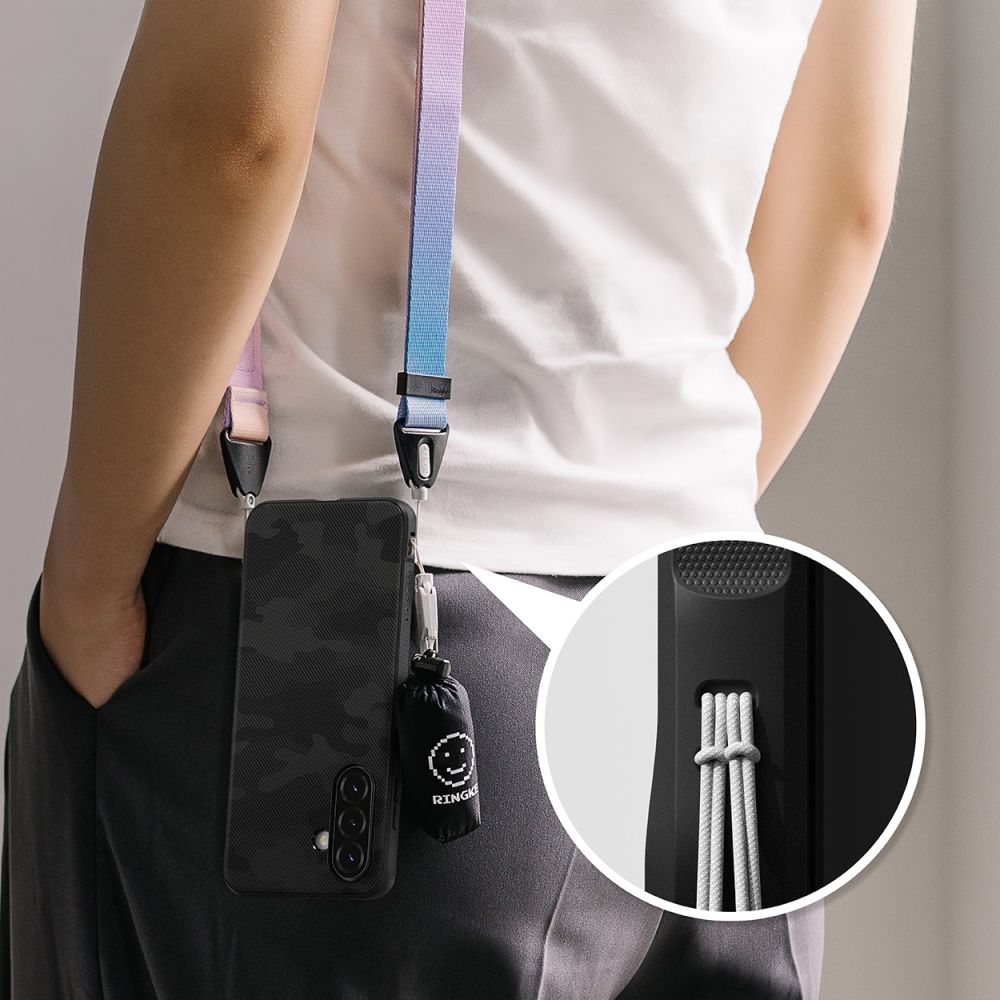 Etui z serii Onyx od firmy Ringke wykonane jest z miękkiego i wytrzymałego tworzywa termoplastycznego, dodatkowo wzmocnionego na krawędziach by jak najlepiej chronić urządzenie. Nieco podniesiona forma obudowy wokół aparatu i ekranu chroni go przed zarysowaniami, unosząc telefon tuż nad powierzchnią płaską. Posiada osłony na przyciski, wycięcia na porty i smycz.