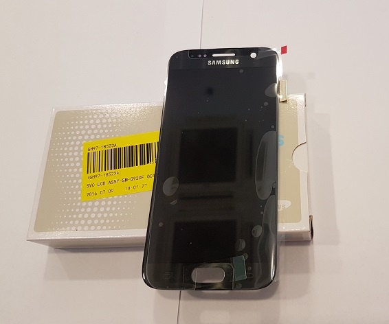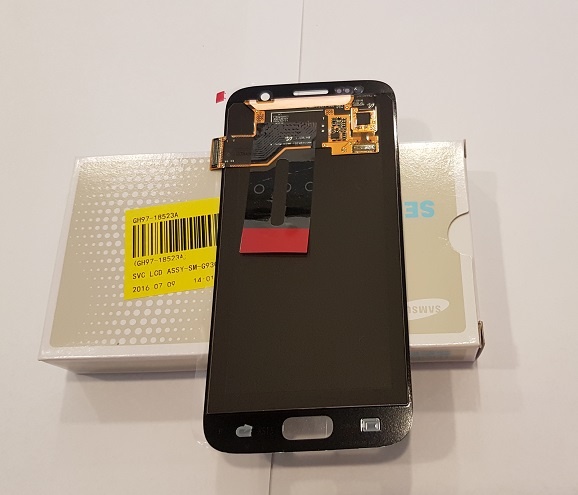 Nowy, Oryginalny Wyświetlacz LCD Szybka Dotyk Digitizer dedykowany do telefonu komórkowego Samsung Galaxy S7 G930F w kolorze Czarnym. 100% Oryginał. Wyświetlacz ze wszystkimi elementami widocznymi na zdjęciu. Wyświetlacz posiada oryginalną taśmę potrzebną do wklejenia wyświetlacza.