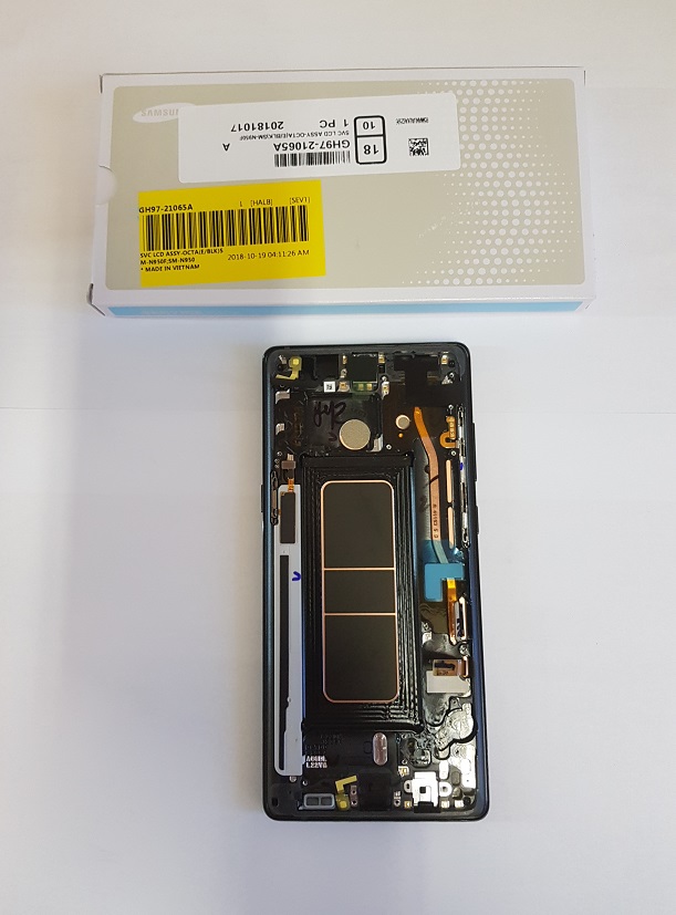 Oryginalny wyświetlacz lcd Super Amoled szybka dotyk digitizer korpus Samsung Galaxy Note 8 SM-N950F. Ramka w kolorze srebrnym.
