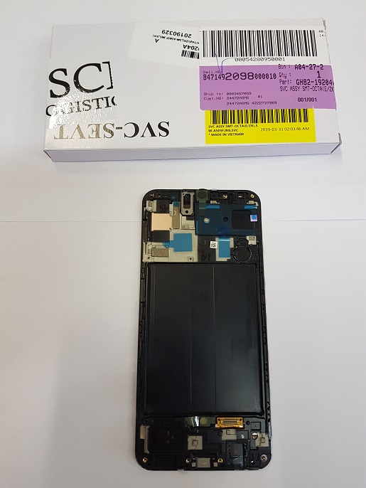 Nowy, 100% oryginalny wyświetlacz LCD Super Alomed dedykowany do telefonu komórkowego Samsung Galaxy A50 SM-A505 w kolorze czarnym.
