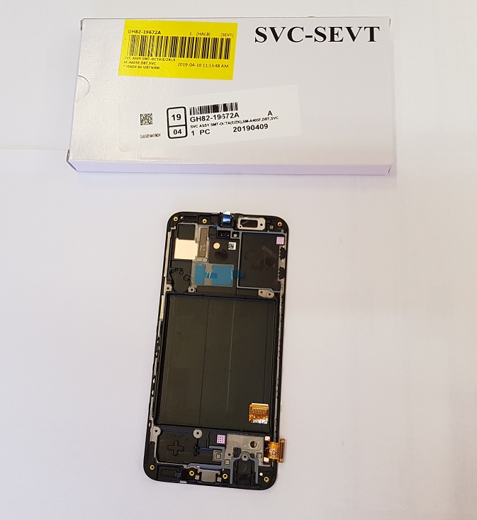 Nowy, 100% oryginalny wyświetlacz LCD Super Alomed dedykowany do telefonu komórkowego Samsung Galaxy A40 SM-A405 w kolorze czarnym.