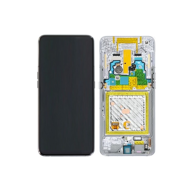 Nowy, 100% oryginalny wyświetlacz LCD Super Alomed dedykowany do telefonu komórkowego Samsung Galaxy A80 SM-A805 w kolorze srebrnym.